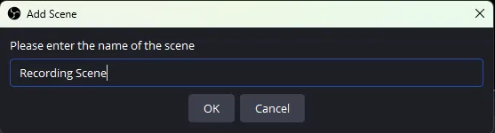 Name your scene (e.g., "Screen Capture" or "Webcam Overlay").